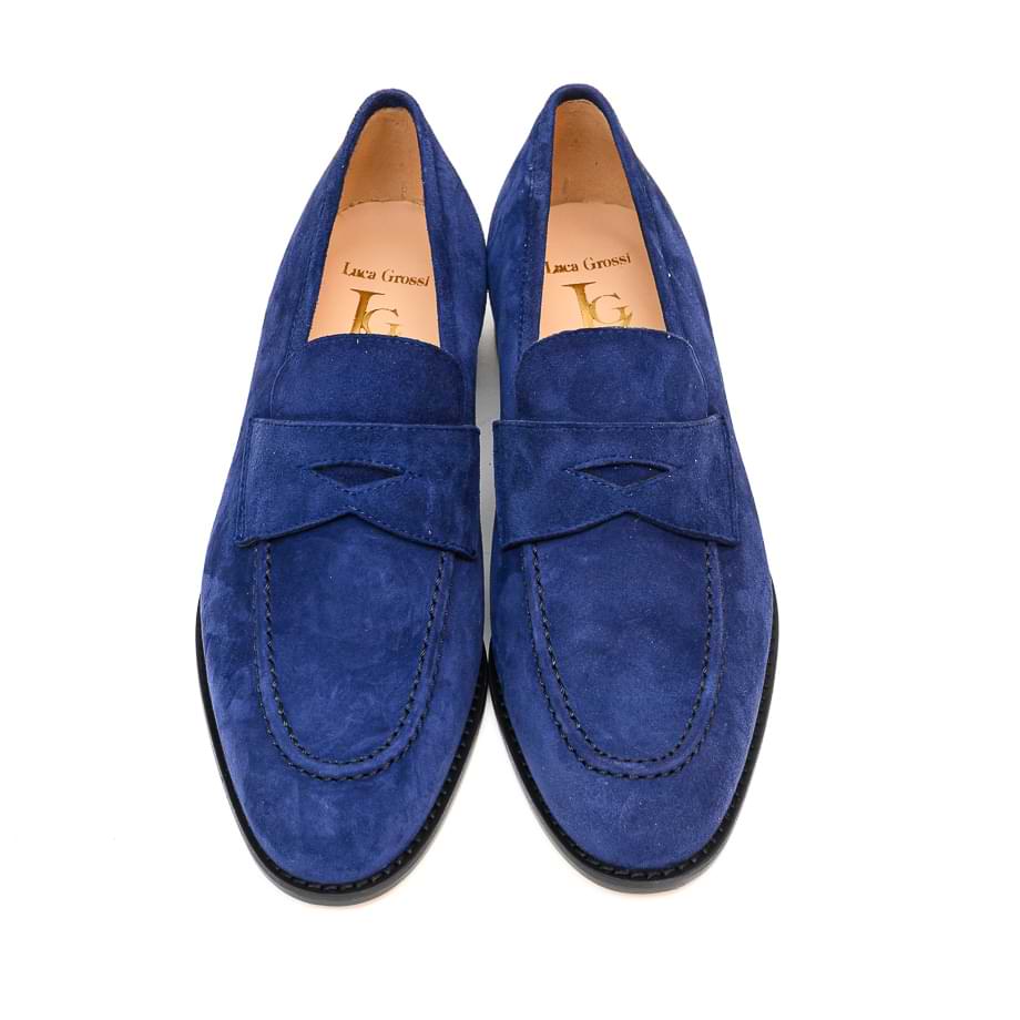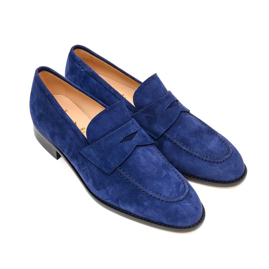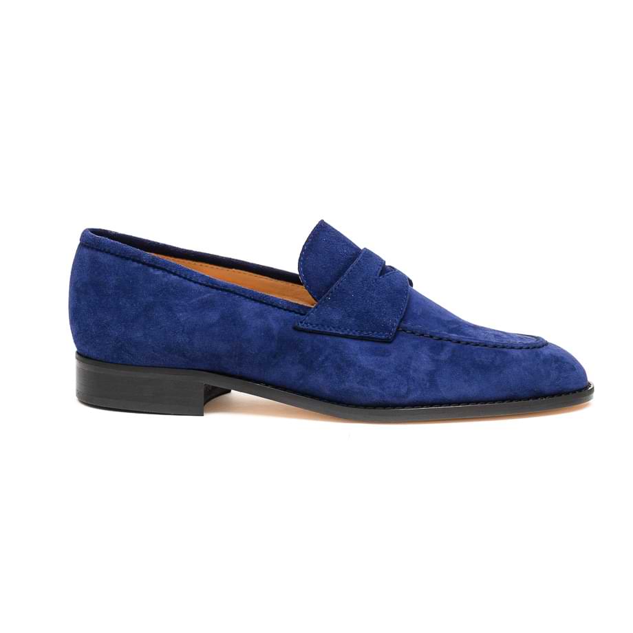 Mokasina izrađena od mekane velur kože u mastilo plavoj boji. Unutrašnjost je postavljena kožom Đon je kožni a visina slagane pete je 2.5cm.